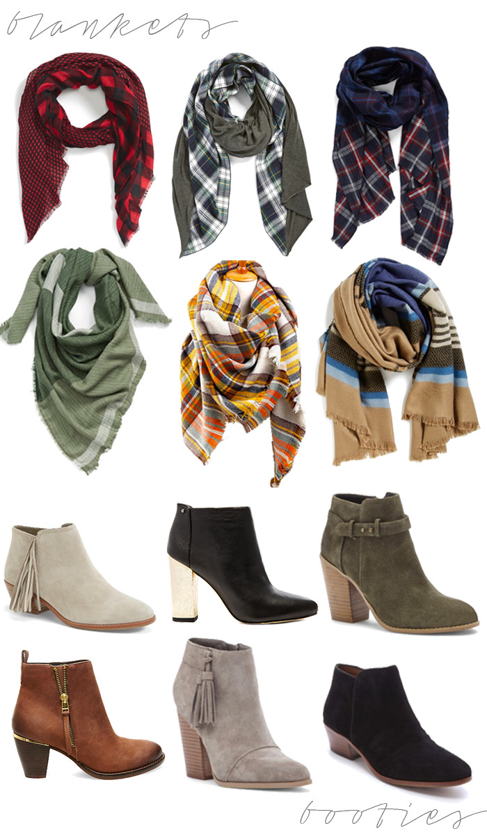 Fall means two things to me: colorful blanket scarves and leather or suede booties. They're perfect for sunshine, temps in the 60s and a crisp breeze in the air. I can already imagine combining some of these for a winery weekend or tailgating for a football game! Bring on the blankets and booties!!!