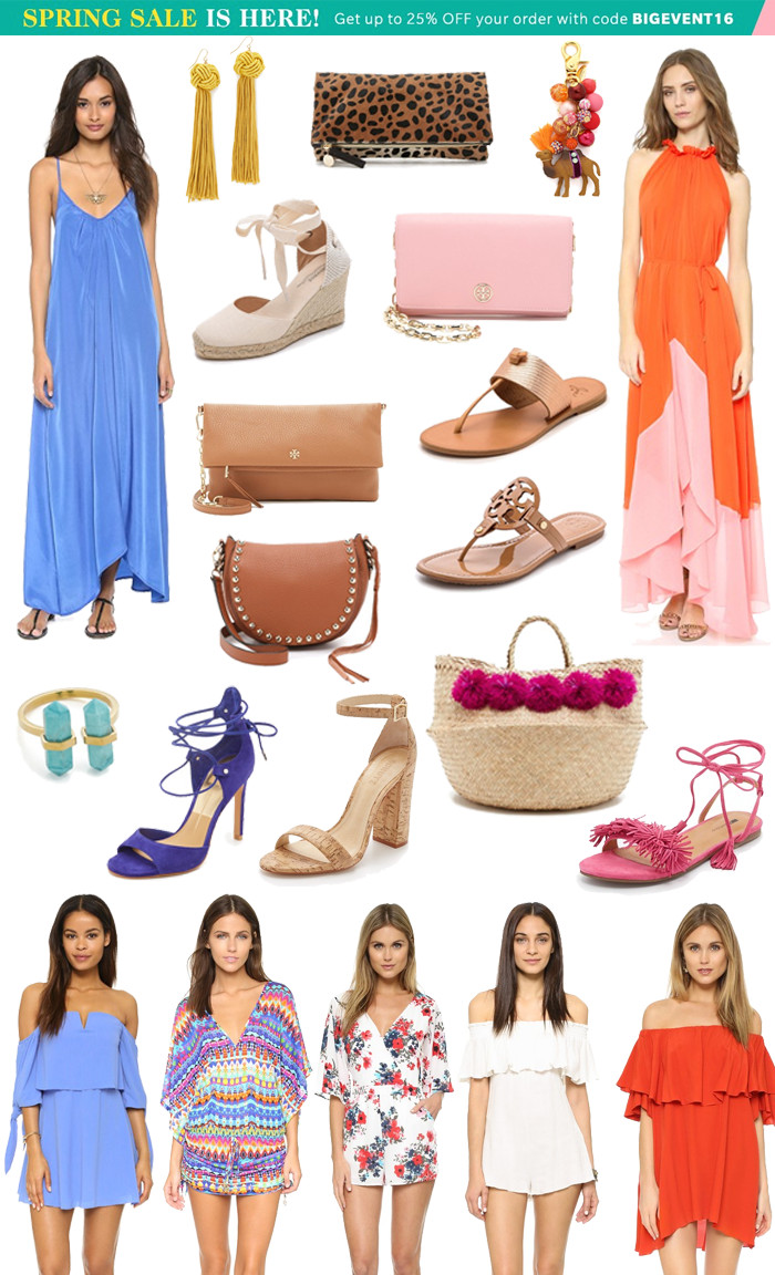 This spring I'm all about rompers (surprise, surprise), soft blues and pinks, tassels and fringe, neutral accessories, fun pops to any outfit (like that keychain), and closet staples. You can never go wrong with a flowy maxi dress and a leopard print clutch! Outfits that go from beach to dinner with ease make packing for trips so much easier! I have cork heels similar to these and got so much use out of them - the cork takes a neutral up a step [pun intended].